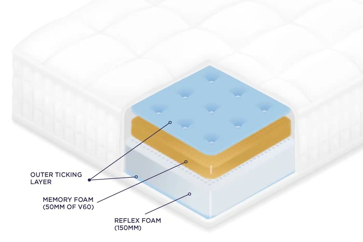 Made from 150mm of Reflex foam topped with a 25mm layer of V60 Visco-Elastic memory foam, the Jupiter is designed for the more substantial consumer – and can comfortably support sleepers up to 25 stone.