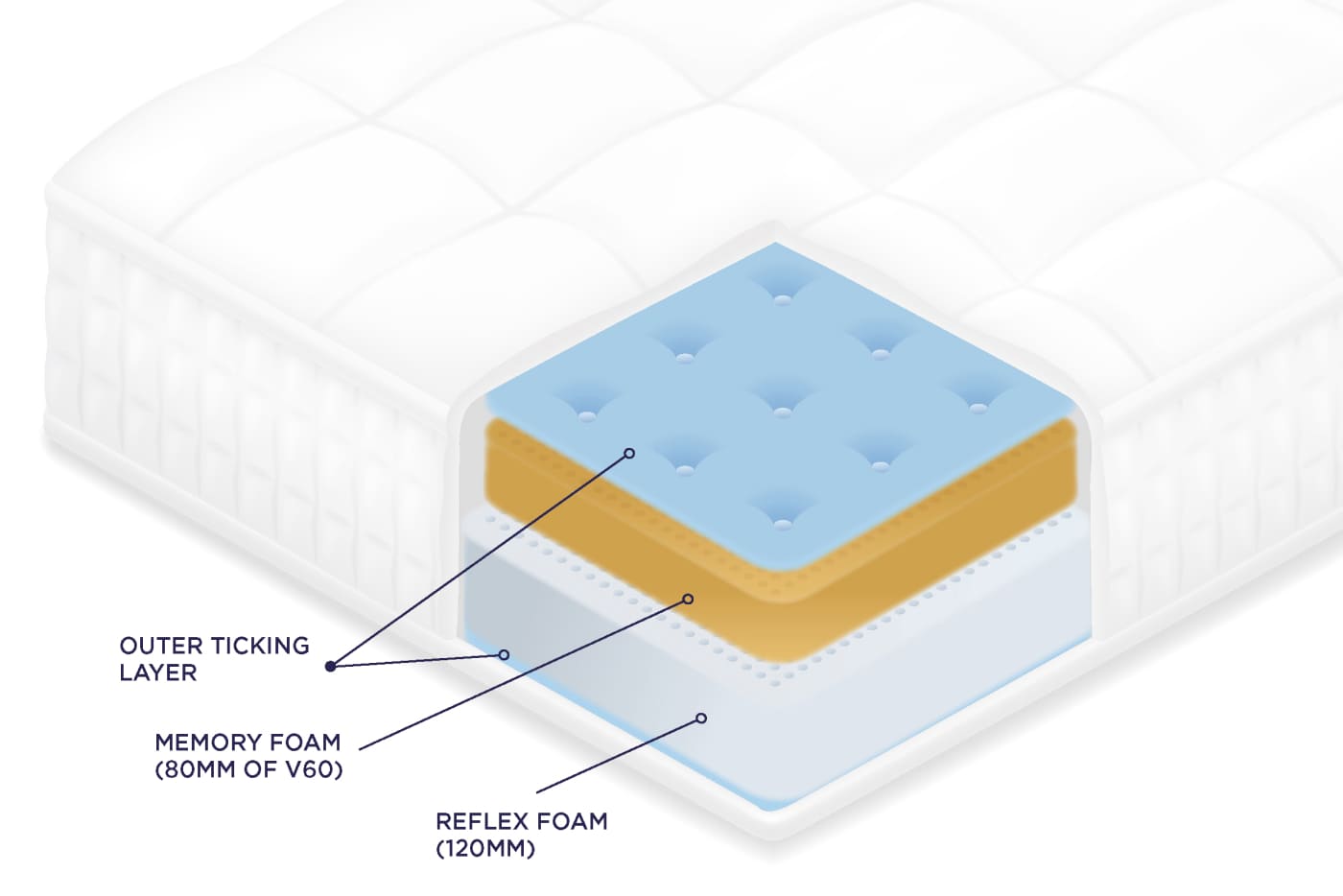 Constructed from a 120mm layer of Reflex foam, topped with 80mm V60 Visco-Elastic memory foam, the Mars is designed to help relieve aches and pains, preserve spinal alignment and minimise motion transfer – so if you have a partner who tends to toss and turn, it may be an ideal solution.