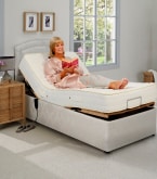 The Grasmere rise and recline bed has an upgraded action where the base is solid, giving you a very high-quality bed base. The fully upholstered base comes with an upholstered mattress retainer at the foot end and chrome-plated castors as standard.